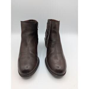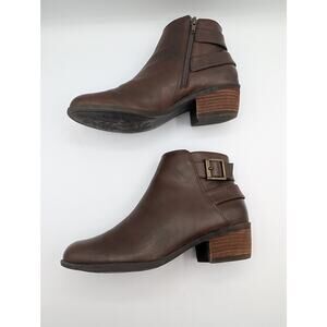 Vince Cameo VP-Peamer Brown Leather Buckle Zip Heels Ankle Boot Women's US 7.5M