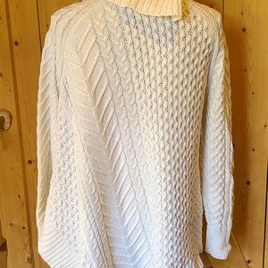 Sweater drapes longer on the left side, looks awesome on. Very warm for the upcoming winter!! In excellent condition, worn one season.