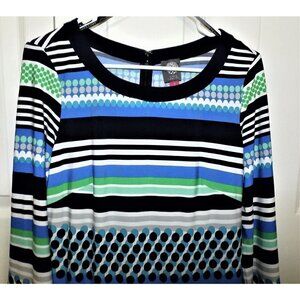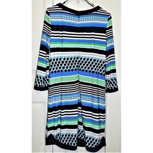 Bright colors and geometric striped dress with 3/4 sleeves and back zipper.