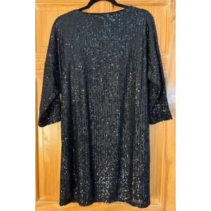 Vince Camuto 3/4 Dolman Sleeve Black Sequin Sheath Holiday Dress NWT Small