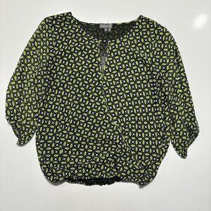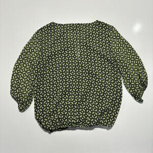 Vince Camuto 3/4 Sleeve Light Blouse Sz Small Green Leafs Elastic Bottom