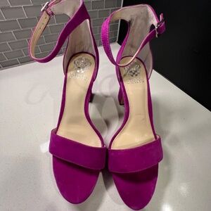 Vince Camuto 4” thick heel open toe Raspberry faux suede size 10 shoes