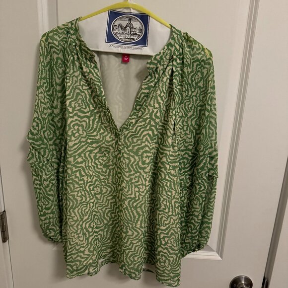 Vince Camuto Abstract Floral Top (Size: M; Color: Green)