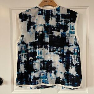Vince Camuto Abstract Print Sleeveless Button Up Dress Shirt Blouse Tank Top Med