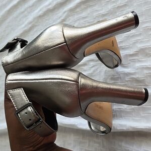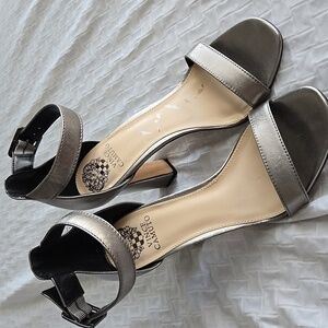 Step out in style with these elegant Vince Camuto silver heels. Perfect for any occasion, these shoes offer both comfort and sophistication.