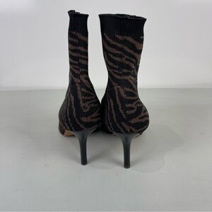 Vince Camuto Achie Knit Sock Booties Point Toe Brown Tiger Print Women's Sz 6.5