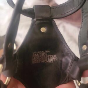 The Adalina gives the classic T-strap sandal a cool and edgy touch. Made with genuine calf leather. Adjustable buckle closure. Polished gold-tone hardware and studding. Thong-style construction. Man-made lining. Wedge lift at heel. Man-made sole. Check out this comfort-enhancing accessory. Black with Gold Hardware