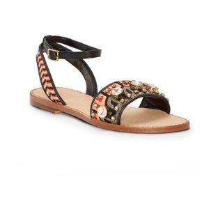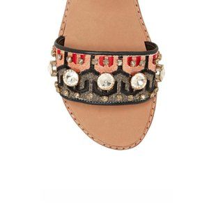 Faceted crystals highlight the embroidered straps of a breezy ankle-strap sandal.