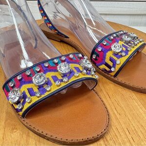 Vince Camuto Akitta Tribal Embroidered Rhinestone Ankle Strap Boho Sandals 9.5