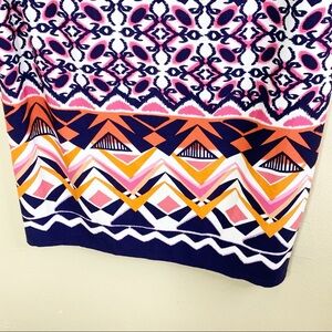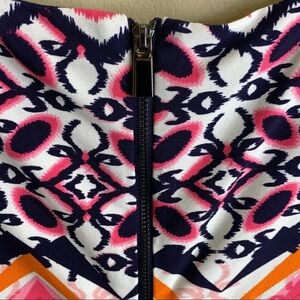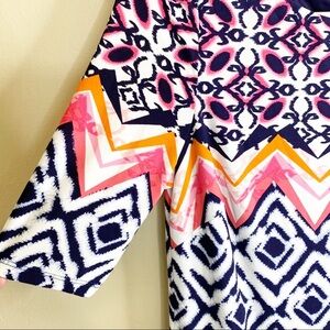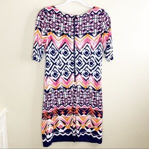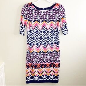 Vince Camuto - navy blue all-over print 3/4 sleeve shift dress. Exposed back zip closure. Lined. Size 8.