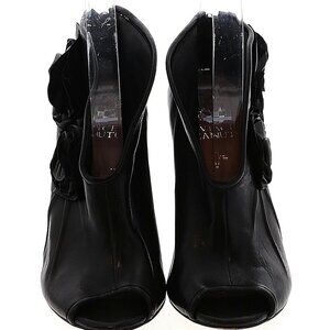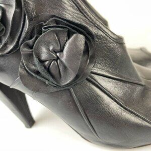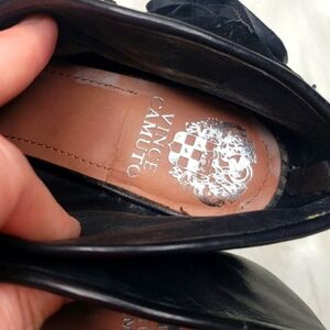 Vince Camuto Alta Black Leather Heels Size 6.5 Rosette Details Peep Toe
