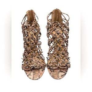 Step out in style with these chic snakeskin heeled sandals. Perfect for any occasion, these shoes offer a unique blend of elegance and comfort. The intricate design and neutral tones make them a versatile addition to your wardrobe.
