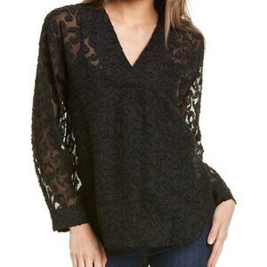 Vince Camuto Animal Clip Jacquard Top 9160011 Blouse Red Womens Size M Sheer