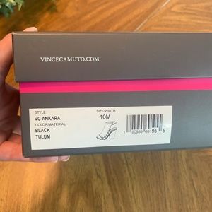Vince Camuto's Ankara sandals stitch together a striking look that sets an asymmetrical slingback design atop a chunky block heel.