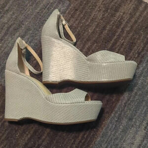 Super cute abstract weave platform wedge. Leather upper with rubber soles. Open toe with adjustable ankle strap with buckle closure. Platform wedge heel.