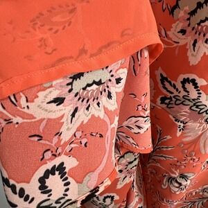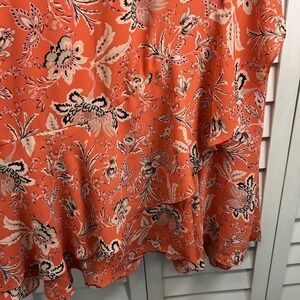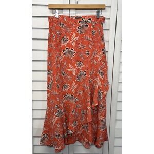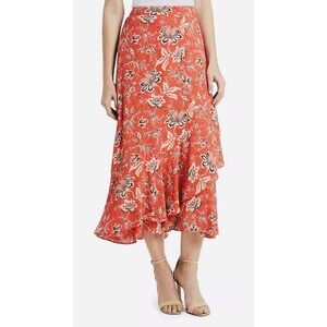 Vince Camuto Antique Floral Faux Wrap Ruffle Asymmetrical Hem Midi Skirt Size 4