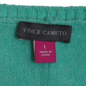 This Vince Camuto V-neck pullover sweater offers a chic, oversized fit with effortless style, brand new with tags attached. The cozy, soft knit fabric in a beautiful pastel green/teal color is perfect for adding a pop of color to any wardrobe. It features roomy dropped shoulders and banded cuffs for a relaxed silhouette.
