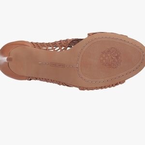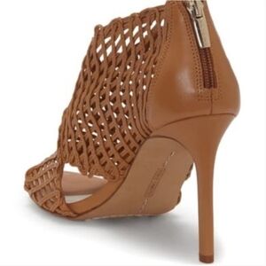 delicate caged detail adds a contemporary feel to these stylish Armenta heeled sandals by Vince Camuto.