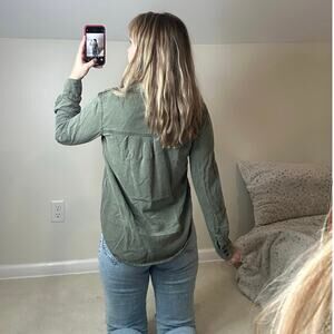 Vince Camuto: Army Green Relaxed Long Sleeve Button Down Blouse