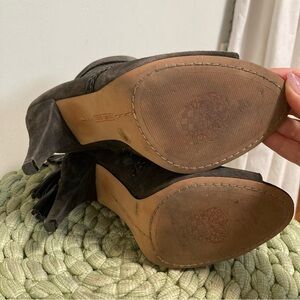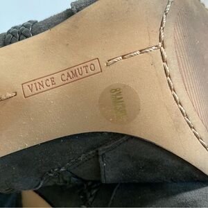 Vince Camuto Astan Charcoal Suede Leather Braided Wrap Tassel Open Toe Booties