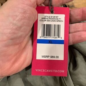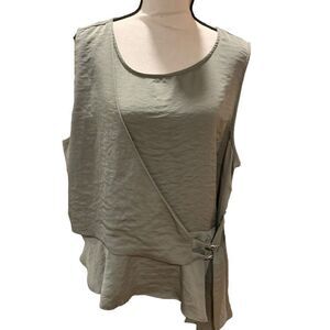 Vince Camuto Asymmetrical Layered Belted Tank Hammered Satin Camo Grn XL NWT $89