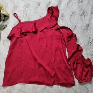 Vince Camuto Asymmetrical Ruffle One Shoulder Blouse In Tropical Red Size M
