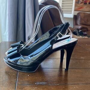 Vince Camuto Ava Black Patent Leather Peep Toe Slingback Pumps size 7.5 bow