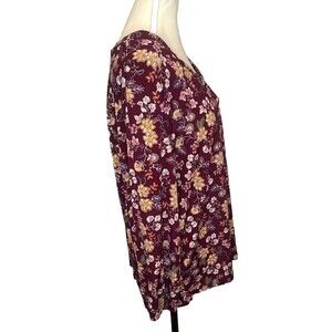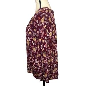Vince Camuto BURGUNDY Multicolor Floral V-Neck 3/4 Sleeve Top XL Career Casual