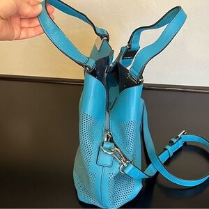 Vince Camuto Beatt blue Moon perforated leather satchel bag with strap EUC