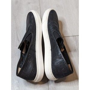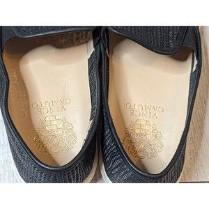 Vince Camuto Becker Black Leather Open Weave Slip On Loafer Sneaker sz 8.5. There is some staining to the midsoles