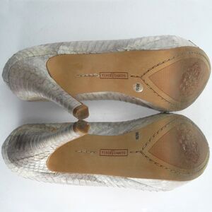 Vince Camuto Beige Rose Snakeskin Leather Peep Toe Heels - Women's Size 9