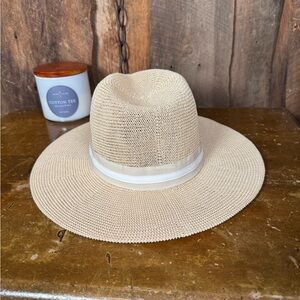 Elegant woven hat by Vince Camuto. Ideal for sunny outings.