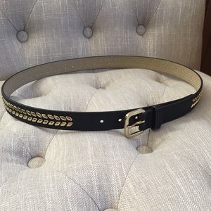 Beautiful gold detailed belt worn once. No wear. Belt is 42 inches long but still fits my waist at the last hole for a 28 inch waist up to around 34 inch. Free gift included. Purchased at Dillard’s.