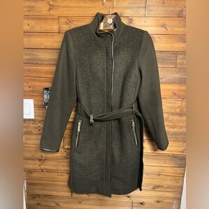 Vince Camuto Belted Wool Coat with High Neck and PU Trim size medium