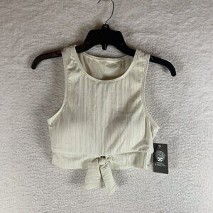 Vince Camuto Bikini Top Women's Small Ivory Nylon Stretch Ribbed Tie-Front 9878
