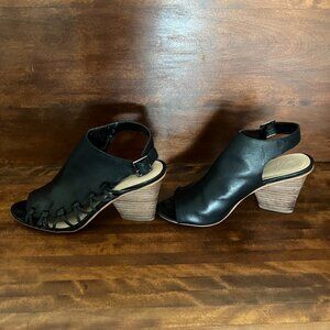 Vince Camuto Black Ankara Peep-Toe Slingback Leather Block Heel Sandal Size 9.5