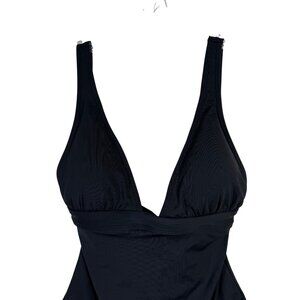 Vince Camuto Black Architectural Swimsuit Size 10 One Piece Deep Plunge Neckline