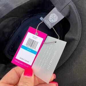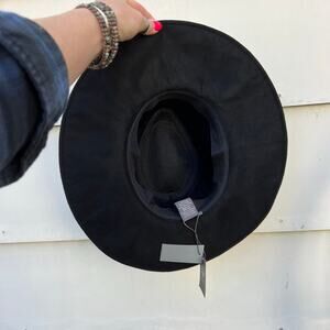 Vince Camuto Black Cowgirl Hat Braided Cord Band Faux Suede Leather O/S NWT