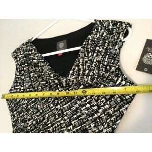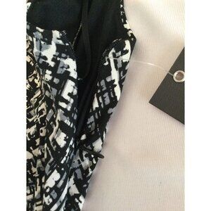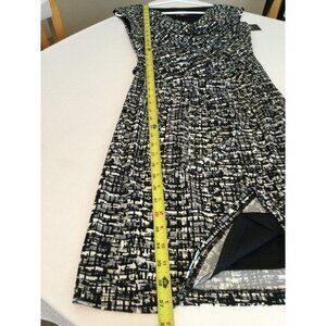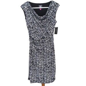 Vince Camuto Black Cowl Neck Sheath Dress Side Ruching $128 Size 4 White Print