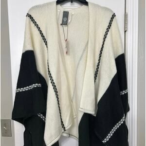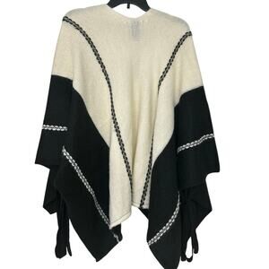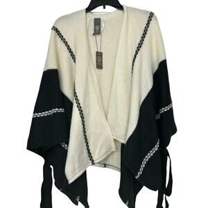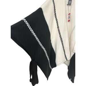 Vince Camuto Black & Cream Poncho Sweater Bow Tie Sleeves One Size New Cozy