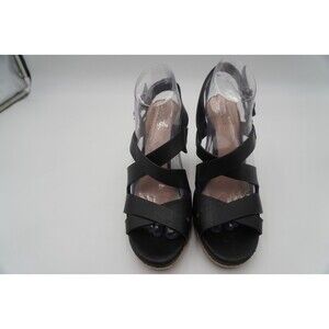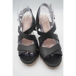 Vince Camuto Black Crisscross Straps Espadrille Trim Platform Wedge Sandals Sz 9