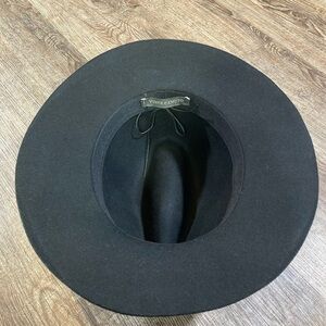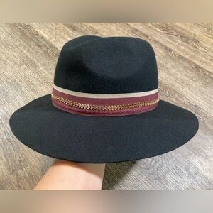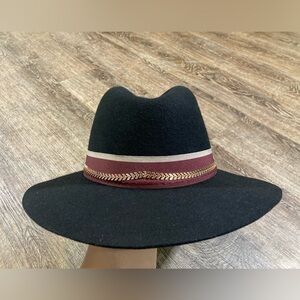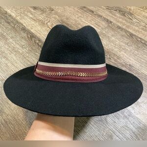 Vince Camuto Black Felt Fedora Hat OS. This is in excellent condition with no signs of wear. The band has a metal chain leaf embellishment. This has no size tag but the measurement on the inner hat rim is 22”. Please message me prior to purchase with any questions. Thank you!