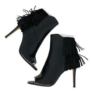 Vince Camuto Black Fringe Amenala Heel Bootie Size 8.5 NWT $179 MSRP