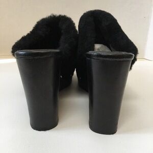 Vince Camuto Black Fur-Trimmed Wedge Mules