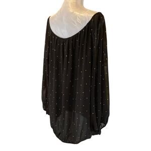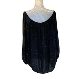 Vince Camuto Black Gold Jewel Flowing Sexy Sheer Off The Shoulder Shirt Size 2X
