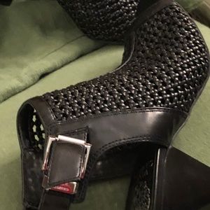 Great Vince Camuto Open Toe Booties. Great Condition, Only worn for an event once. Back heel area is also open with strap with silver buckle.