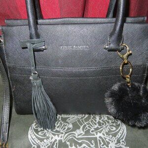 Vince Camuto Black Italian Leather Tote Handbag Crossbody w/ orig charm & tassel