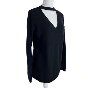 Vince Camuto Black Knit Top Size Medium Large Cutout Long Sleeves V Neck Neutral