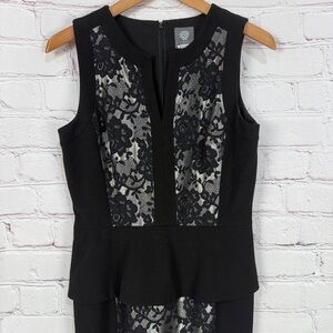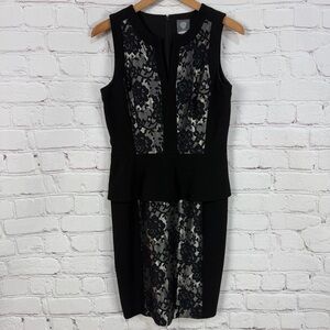 Vince Camuto Black Lace Peplum Sheath Dress Size 6 Cocktail Party Elegant guest