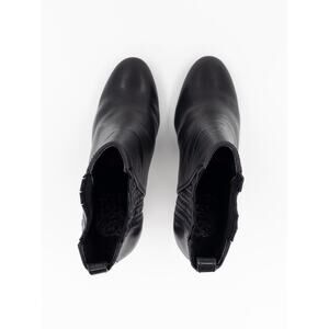 Vince Camuto women’s black ankle boots crafted from genuine leather with a timeless rounded toe and sturdy block heel. A versatile, polished style that transitions effortlessly from workwear to casual or evening looks.